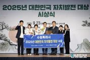 안녕일보 배윤 기자 | 수원특례시가 (사)한국자치발전연구원 주관 ‘2025년 대한민국 자치발전대상’에서 기초자치 부문 대상을 받았다. 시상식은 23일 백범김구기념관 컨벤션홀에서 열렸다. (사)한국자치발전연구원이 주최하고, 한국지방자치학회·한국지역개발학회가 후원하는 ‘대한민국 자치발전 대상’은 지역의 특색있는 자원을 활용하거나 독창적인 행정을 펼쳐 지역 혁신과 지방자치 발전에 이바지한 지방자치단체·지방의회의원·국회의원·공무원·민간단체 등에게 수여하는 상이다. 수원시는 ▲시민 참여를 통한 생활자치 기반 확산 ▲특례시 권한 확대, 제도 정착 ▲지역균형발전과 생활 SOC(기반 시설) 확충 ▲청년·복지·문화 정책의 혁신적 추진 ▲스마트행정과 디지털 전환 강화 등에서 높은 평가를 받았다. 특히 ‘시민과 함께 만드는 특례시 자치모델’을 실현해 지역사회의 공감대를 넓히고, 지방분권의 모범 사례가 됐다는 평가를 받았다. 이재준 수원시장은 “이번 수상은 시민과 함께 이뤄낸 값진 성과”라며 “앞으로도 시민이 주인인 진정한 자치분권 도시, 대한민국을 선도하는 특례시로 발전해 나가겠다”고 밝혔다.