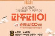 안녕일보 배윤 기자 | 파주시는 다가오는 설 명절을 맞아 추가 충전금 혜택을 받을 수 있는 충전 한도를 기존 70만 원에서 100만 원으로 상향한다. 2월 한 달간 100만 원을 충전할 경우, 연중 상시 지급되는 10% 인센티브가 적용돼 추가 충전금 10만 원이 더해진 총 110만 원을 사용할 수 있다. 이를 통해 명절을 앞두고 소비 지출이 늘어나는 시민의 경제적 부담을 덜고, 지속적인 경기 침체로 어려움을 겪고 있는 관내 소상공인의 매출이 증대될 것으로 기대된다. 파주시 관계자는 “이번 파주페이 확대 발행이 설 명절 장바구니 물가 부담을 완화하고, 지역 골목상권에 활력을 불어넣는 마중물이 되길 바란다”라며, “시민 여러분의 많은 관심과 이용을 부탁드린다”라고 전했다. 한편, 파주페이는 ‘경기지역화폐’앱 및 관내 농협을 통해 충전이 가능하며, 현재 음식점, 학원, 전통시장 등 1만 6천여 개의 가맹점에서 사용할 수 있다. 파주시는 시민 편의 증진과 지역경제 활성화를 위해 지난해 가맹점 연매출 제한 기준을 12억 원에서 30억 원으로 대폭 완화해 사용처를 확대한 바 있으며, 어려운 재정 여건 속에서도 상시 10%
