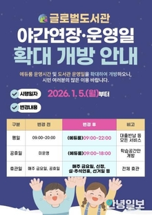 의왕시 글로벌도서관, 2026년 1월부터 야간 연장·공휴일 확대 운영