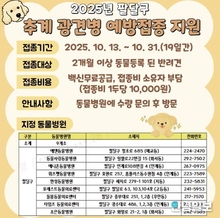 수원시 팔달구, 추계 반려동물 광견병 백신 지원