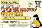안녕일보 배윤 기자 | 의왕도시공사는 고객만족(CS) 아이디어 공모전‘고객과 함께 통통(通通)’을 추진한다고 밝혔다. 공모전은 10월 15일부터 11월 14일까지 4주 동안 진행되며, 의왕도시공사 시설을 이용하는 고객 및 의왕시민 누구나 참여할 수 있다. 공모 주제는 서비스 과정, 서비스 환경, 디지털 서비스 등 3가지 분야로 공사 관리 시설의 고객만족 서비스를 향상 시키고 고객 불만족 요소를 해소할 수 있는 창의적이고 지속 가능한 서비스 개선 방안이다. 심사 기준은 창의성, 필요성, 실현 가능성, 효과성, 지속 가능성 등으로 심사 기준을 고루 충족한 우수 아이디어를 제안한 3인(최우수·우수·장려 각 1명)에 대해서는 총 50만원의 상금(의왕사랑상품권)과 상장이 수여될 예정이다. 아울러, 공사는 공모전을 통해 제안되는 우수 아이디어를 현장 실현 가능성 등을 검토하여 실제 고객서비스 개선에 적극 반영한다는 계획이다. 공사 노성화 사장은“이번 공모전은 시민과 고객이 행복한 의왕도시공사를 만들기 위한 시민참여·소통 프로젝트의 일환”이라며 “참신하고 혁신적인 아이디어를 가진 시민 여러분의 많은