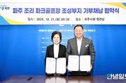 안녕일보 배윤 기자 | 파주시는 지난 21일, 조리 파크골프장 조성 부지 기부채납 협약식을 개최해 파크골프장 조성 사업에 첫발을 내디뎠다. 이날 협약식에는 김경일 파주시장과 토지 기부자인 라보배 씨 등 관계자들이 참석했으며, 조리읍 이장단협의회장, 노인회장, 체육회장, 새마을지도자협의회장, 행복나눔협의체회장 등 지역 주요 단체장이 함께해 지역 발전의 의미를 더했다. 이번 협약은 파주 동부권역 주민의 복리 증진과 생활체육 활성화를 위해 추진된 것으로, 라보배 씨가 11,865㎡ 규모의 부지를 파주시에 무상으로 기부채납함에 따라 조리 파크골프장 조성 사업이 본격화될 예정이다. 파주시는 해당 부지를 활용해 9홀 규모의 산악형 파크골프장을 조성할 계획이며, 2026년 상반기 도시관리계획 결정 및 실시계획인가 절차를 마무리하고, 2026년 하반기 착공 및 2027년 3월 개장을 목표로 사업을 추진하고 있다. 토지 기부자 라보배 씨는 “제가 기부한 토지가 시민들의 건강과 삶의 질을 높이는 공간으로 활용된다는 점이 매우 뜻깊고 기쁘다”라며 “조리 파크골프장이 시민들이 즐겁게 모이고 오래도록 사랑받는 장소로 자리