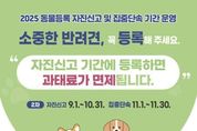 안녕일보 배윤 기자 | 수원시가 동물의 유실·유기를 방지하기 위해 10월 31일까지 ‘동물등록 자진신고 기간’을 운영한다. 자진신고 기간에 동물등록을 하지 않은 시민이 동물을 등록하거나, 소유자 변경 등 동물등록 변경 신고로 동물등록 정보를 현행화하면 과태료가 면제된다. 등록 대상은 월령 2개월 이상의 개다. 소유자가 원하면 고양이도 등록할 수 있다. 동물등록 방법은 동물등록대행 동물병원을 방문해 반려동물에 내장칩을 주사하는 내장형 방식과 외장형 장치를 구입해 부착하는 외장형 방식이 있다. 두 방법 중 한 가지를 선택해 동물등록 신청서를 동물등록대행 동물병원에 제출하면 된다. 동물등록대행 동물병원 현황은 국가동물보호정보시스템에서 확인할 수 있다. 등록 후 소유자 정보, 주소, 연락처 등 변경 사항이 생기면 각 구청 경제교통과 산업팀(방문)이나 정부24·국가동물보호정보시스템에서 신고하면 된다. 동물을 등록하면 잃어버린 반려동물을 찾을 때 도움이 된다. 주인을 잃은 반려동물을 동물보호센터 등 동물보호기관에서 보호하면 기관에서 국가동물보호정보시스템의 동물등록정보를 확인해 소유자에