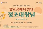 안녕일보 배윤 기자 | 수원시가 하반기 ‘향교골에서 만난 정조대왕님’ 프로그램을 9월 16일부터 11월 29일까지 수원향교에서 운영한다. 향교골에서 만난 정조대왕님은 국가유산청 공모 사업인 ‘향교·서원 국가유산 활용 사업’의 하나다. 하반기 프로그램은 ▲정조 임금님 수원향교에 오신 날 ▲수원향교와 자연 이야기 ▲올바른 몸가짐 -모든 일의 근본- 등으로 구성된다. ‘정조 임금님 수원향교에 오신 날’은 1795년 을묘년 원행 당시 정조가 수원향교를 찾은 역사적 사실을 중심으로, 알성례 재현, 수원향교 블록 만들기, 조선시대 책 제작 등을 하는 체험 교육이다. 1795년 정조가 수원향교에서 행한 일들을 체험할 수 있다. ‘수원향교와 자연 이야기’는 수원향교 내 동식물과 전통 목조건축을 소재로, 수원향교의 생태적 특징을 알아보고, 우리 전통 건축의 결구(結構) 방식을 체험하는 프로그램이다. 매산초등학교 5~6학년 학생들을 대상으로 진행되는 ‘올바른 몸가짐 -모든 일의 근본-’은 조선시대 기초 교육의 핵심이었던 예절을 현대적 체험 활동으로 재구성한 프로그램이다. 수원향교 소개와 함께 기본 인사법 등 전통 예