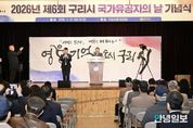 안녕일보 배윤 기자 | 구리시는 지난 3월 27일 오전 10시 구리시청 대강당에서 국가유공자 및 내빈 약 400명이 참석한 가운데‘2026년 제6회 구리시 국가유공자의 날 기념행사’를 개최했다. ‘국가유공자의 날’은 국가유공자의 희생과 헌신을 시민과 함께 기억하고, 나라 사랑 정신을 계승하기 위해 2019년 구리시가 전국 최초로 지정한 기념일로, 매년 3월 넷째 주 금요일에 기념행사를 개최하고 있다. 이날 행사에서는 대진대학교 208학군단의 예도로 입장식이 진행돼 국가유공자에 대한 예우를 표했으며, 국가유공자 기록화 사업인 ‘잠들지 않는 이야기’ 8편 발간 참여 어르신들의 삽화와 도서 전시를 통해 시민과 함께 공감할 수 있는 의미 있는 자리가 마련됐다. 기념식은 구리시립합창단의 공연으로 시작해 대형 손 글씨 축하공연으로 이어지며 국가유공자의 숭고한 정신을 기리는 분위기를 한층 더했다. 이어 보훈·단체 활성화 유공자에 대한 표창 수여와 함께 ‘잠들지 않는 이야기’를 바탕으로 한 책 공연이 진행돼 국가유공자들의 삶과 업적을 되새기는 시간을 가졌다. 또한 NH농협은행 구리시지부에서 혼합 잡곡
