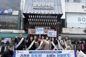 안녕일보 배윤 기자 | 수원시 팔달구는 2025년 11월 26일 지동교 일원(지동시장·미나리광시장·못골시장)에서 ‘제6회 새빛세일페스타 연계 Boom-up 물가안정 릴레이 캠페인’을 실시했다. 이날 행사에는 경제교통과 직원과 물가모니터요원 등 20여 명이 참여해 현수막·전단 등을 활용해 전통시장 및 착한가격업소 이용을 홍보하고, 불공정 상행위 근절과 건전한 소비문화 확산을 안내했다. 또한 새빛세일페스타 참여 독려 등 지역경제 활성화를 위한 시책도 함께 홍보했다. 허두경 팔달구 경제교통과장은 “릴레이 캠페인을 통해 물가안정 분위기를 확산하고 전통시장과 골목상권에 활력이 더해지길 기대한다”며 시민들의 적극적인 이용을 당부했다. 이번 캠페인은 11월 24일부터 27일까지 장안구·권선구·팔달구·영통구가 릴레이 방식으로 이어가며 수원시 전역에서 진행된다.