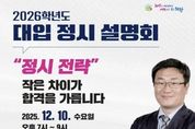 안녕일보 배윤 기자 | 의왕시가 12월 10일 저녁 7시부터 오전커뮤니티센터 5층 강당에서 ‘2026학년도 대입 정시 지원전략 설명회’를 개최한다. 이번 설명회는 대입 수험생과 학부모 200여 명을 대상으로 진행되며, 대입 정시 합격을 위한 실질적인 전략을 제공할 예정이다. 설명회에서는 이투스 진로진학센터 박중서 센터장이 강연자로 나서 2026학년도 수능 결과와 과목별 성적 추이에 따른 입시 결과, 주요 대학별 정시모집 요강 등 다양한 정보를 다룰 예정이다. 특히, 정시모집 가·나·다군 별 합격 지원전략을 제시해 수험생들이 보다 구체적인 계획을 세울 수 있도록 도울 예정이다. 참가 신청은 11월 25일부터 의왕시 통합예약시스템 홈페이지에서 선착순으로 진행되며, 설명회 참석자에게는 2026학년도 정시 지원전략 자료집과 가·나·다군 배치표가 무료로 제공된다. 김은영 평생교육과장은 “지난해와 올해 대입 수시설명회에서 현장반응이 좋고 강사 만족도가 매우 높았던 입시전문가를 재초빙했다”면서 “이번 설명회가 수험생들이 수능 성적을 바탕으로 정확한 합격 전략을 세우는 데 실질적인 도움이 될 것으로