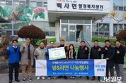 안녕일보 배윤 기자 | 이천제일로타리클럽은 지난 2월 10일, 백사면 관내 취약계층의 든든한 한 끼를 위해 라면 70박스(2,800봉), 백미 3포(30kg)를 백사면행정복지센터에 기탁했다. 이번 기탁식은 단순한 물품 전달을 넘어, 회원들이 십시일반 마음을 모아 준비한 의미 있는 나눔의 시간이었다. 이규화 회장은 "우리의 전통 고유명절인 설날을 앞둔 시점에서 회원들의 자발적인 참여로 마련된 물품이 이웃들에게 작은 위로가 되길 바란다"라며 "앞으로도 이천제일로타리클럽은 지역사회의 가장 가까운 곳에서 나눔의 가치를 실천하는 단체가 되겠다“라고 말했다. 이천수 백사면장은 "매년 잊지 않고 온정의 손길을 내어주는 이천제일로타리클럽에 감사드리며, 이번에 기탁하신 소중한 물품을 관내 도움을 필요로 하는 분들에게 정성껏 전달해서 따뜻한 백사면이 되도록 하겠다"라는 말로 화답했다.