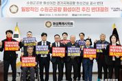 안녕일보 배윤 기자 | 화성특례시의회는 9일 남양읍 모두누림센터에서 열린 '수원군공항 화성이전 반대 범시민대책위원회 2026년 총회'에 참석해, 시민사회의 단호한 반대 의지를 재확인하고 시민주권에 기반한 합리적 절차 확립을 강력히 촉구했다. 이날 총회는 배정수 의장을 비롯해 정흥범 부의장, 김영수 의회운영위원장, 이계철 도시건설위원장, 김경희·송선영·이용운·최은희 의원이 참석했고, 범시민대책위원회 회원 등 약 30명이 함께한 가운데 개최됐다. 행사는 ▲2025년도 활동 및 성과 보고 ▲2026년 주요 활동 계획 보고 ▲구호 제창 순으로 진행됐으며, 2부에서는 2025년도 회계 결산 보고와 향후 대응 방향에 대한 심도 있는 논의가 이어졌다. 배정수 의장은 “오랜 시간 밤낮없이 화성의 미래를 지켜온 범대위와 시민 여러분께 깊은 존경과 감사의 마음을 전한다”며 “이번 총회는 화성 시민의 주권을 대외적으로 분명히 선언하는 자리”라고 강조했다. 배 의장은 또 “이 사안은 단순한 도시 간 개발 갈등이 아니라, 화성의 자치권·행정권·시민주권의 문제”라며 “화옹지구는 갯벌과 습지가 살아 있는 생태 공간으로, 군공