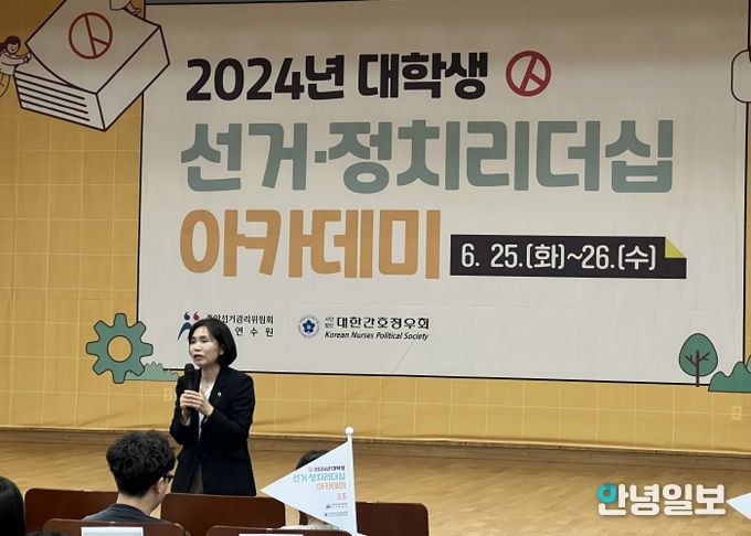 안녕일보 배윤 기자 | 경기도의회 황세주 의원(더불어민주당, 보건복지위원회, 비례)이 26일 중앙선거관리위원회 선거연수원에서 대한간호정우회 주최의 강연에서 전국 간호대학 재학생과 간호사 출신 정치인으로서 의정활동에 대한 소회를 밝히고 다양한 의견을 나누는 자리를 가졌다.