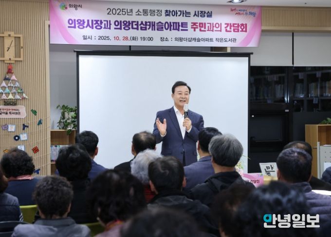 안녕일보 배윤 기자 | 의왕시는 10월 28일 의왕더샵캐슬 아파트 작은도서관에서 ‘찾아가는 시장실’을 열고 아파트 주민들과 함께 시정 현안과 생활 불편 사항에 대해 소통하는 시간을 가졌다.