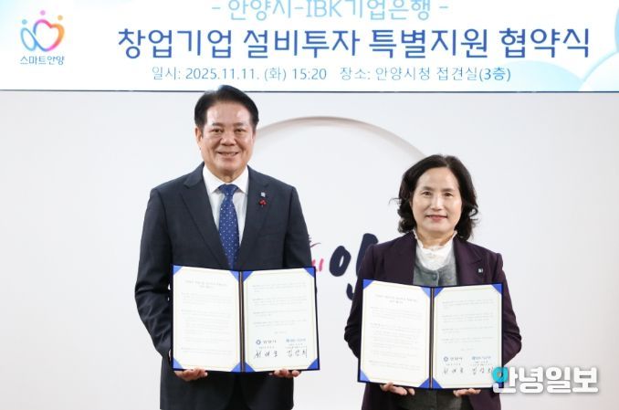 최대호 안양시장은 “중소기업 동행지원사업에 이어 창업기업 설비투자 특별지원까지 관내 기업을 위해 협력해 준 기업은행에 감사드린다”며 “기술력과 성장잠재력을 보유한 창업기업들이 안정적인 성장 기반을 확보할 수 있도록 다양한 지원 방안을 지속적으로 마련하겠다”고 밝혔다.