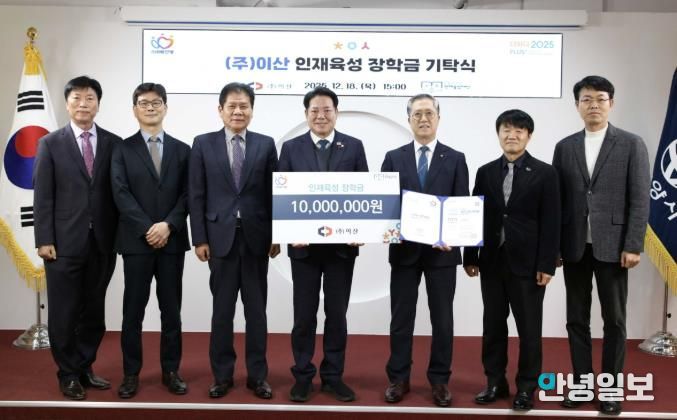 한광두 ㈜이산 사장은 “지역사회로부터 받은 사랑과 성원에 보답하고, 미래세대의 건강한 성장과 꿈을 응원하고자 장학금을 기탁하게 됐다”며, “이 장학금이 학생들에게 든든한 디딤돌이 되길 바란다”고 밝혔다.