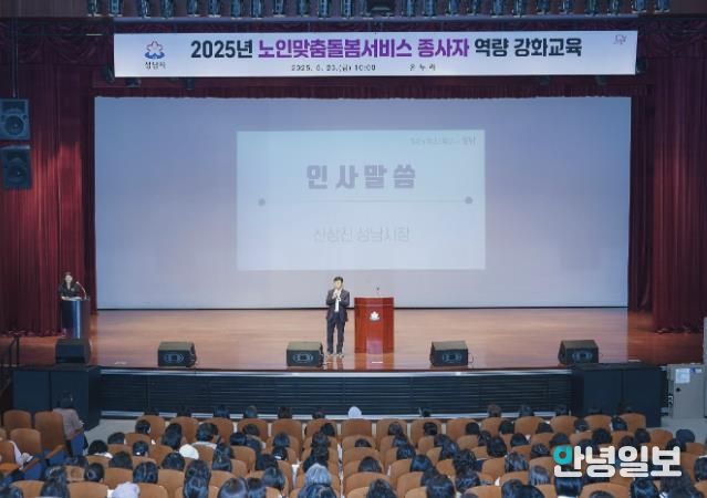 안녕일보 배윤 기자 | 신상진 성남시장은 23일 오전 시청 온누리실에서 개최된 ‘2025년 노인맞춤돌봄서비스 종사자 역량강화 교육’에 참석해 현장 종사자들을 격려했다.