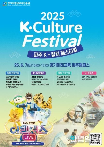 안녕일보 배윤 기자 | 경기도평생교육진흥원은 오는 6월 7일 경기미래교육 파주캠퍼스(구 파주 영어마을)에서 ‘K-컬처 페스티벌’을 개최한다.