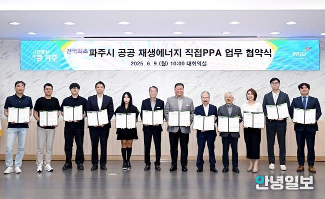 안녕일보 배윤 기자 | 파주시가 국내 지방정부 중 최초로 지역내 기업에 직접 전력거래계약(직접 PPA)을 통한 전력공급 협약을 체결하며, 최근 이른바 ‘기후무역장벽’으로 부상한 알이100(RE100) 실현을 지원하는 공공재생에너지 사업 선발주자로서의 면모를 확고히 했다.