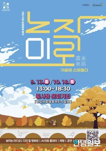 안녕일보 배윤 기자 | 화성시문화관광재단은 9월 13일과 10월 18일 총 2회에 걸쳐 홍사용 문화거리(화성시 반송동 93-5 일원)에서 시민이 직접 기획한 문화예술 축제 ‘2025 노작미로, 가을에 스며들다’를 개최한다.