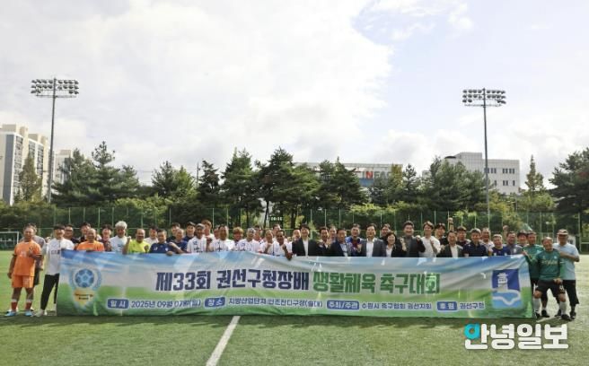 안녕일보 배윤 기자 | 수원시 권선구는 지난 7일 지방산업단지 인조잔디구장과 황구지천생태수자원센터 체육공원에서 '제33회 권선구청장배 생활체육 축구대회'를 개최했다.