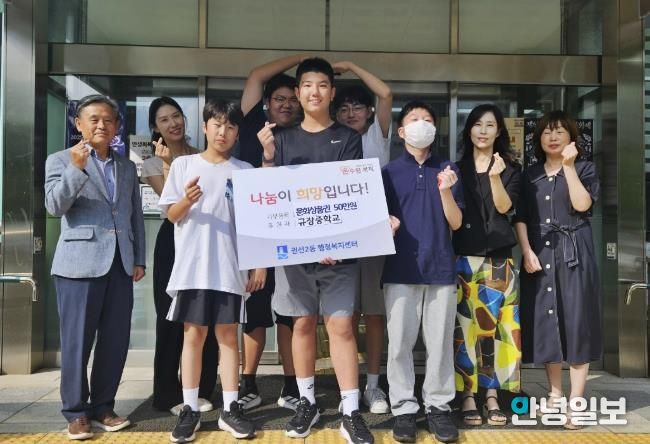 규장중학교 1학년 학생들은 “저희의 작은 정성이 교육 사각지대에 놓인 취약계층 친구들이 힘이 되고 꿈을 키우는 데에 도움이 됐으면 좋겠다. 앞으로도 꾸준히 나눔을 실천하는 학생이 되겠다”라고 소감을 밝혔다.