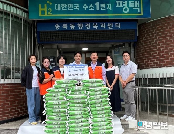 안녕일보 배윤 기자 | (합자)송탄평애미화사가 다가오는 추석 명절을 맞아 17일 쌀 10㎏ 40포를 평택시 송북동 행정복지센터에 기부했다.