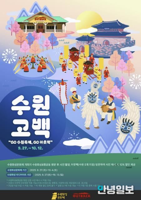 수원시 관계자는 “아웃백스테이크하우스 수원 5개 지점과 함께 수원 축제를 알리는 이벤트”라며 “수원을 관광하며 맛있는 음식도 즐기길 바란다”고 말했다.
