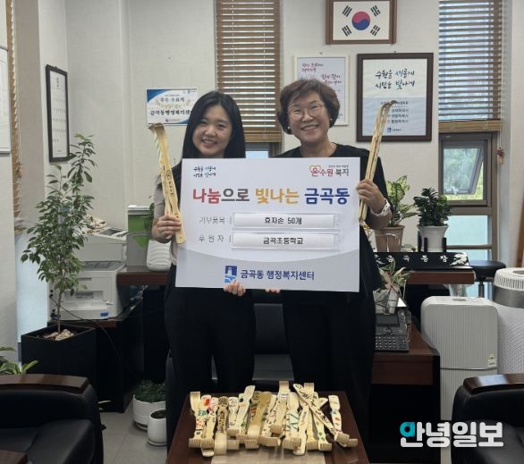 안녕일보 배윤 기자 | 수원시 권선구 금곡동 행정복지센터는 지난 18일, 관내 금곡초등학교 5, 6학년 학생들이 직접 만든 효자손 50개를 기부했다고 밝혔다.