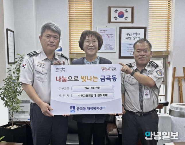 안녕일보 배윤 기자 | 수원시 권선구 금곡동 행정복지센터은 지난 23일, 수원자율방범대 칠보지대에서 일일호프 행사로 마련한 성금 100만원을 전달했다고 밝혔다.