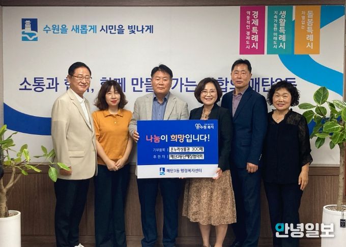 안녕일보 배윤 기자 | 지난 22일, 매탄3동 단체장협의회는 추석 명절을 맞아 관내 저소득 가정과 복지사각지대 주민들을 위해 온누리상품권을 매탄3동행정복지센터에 기탁했다.