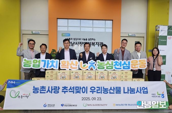농협중앙회 하남시지부 이석표 지부장은 “추석을 앞두고 혼자 균형 잡힌 식사를 하기 어려운 취약계층과 장애인들에게 작지만 따뜻한 정을 나눌 수 있어 매우 기쁘다”며, “앞으로도 지역사회의 소외계층을 위한 다양한 지원과 나눔 활동을 이어가겠다”고 말했다.