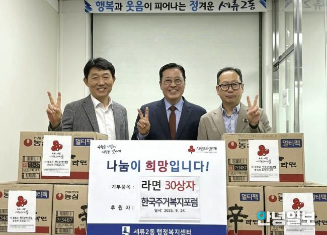 안녕일보 배윤 기자 | 지난 24일, (사)한국주거복지포럼은 지역 내 취약계층을 위해 라면 30상자(100만원 상당)를 세류2동 행정복지센터에 기부했다.