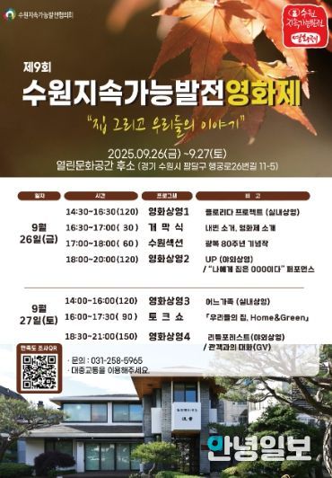 안녕일보 배윤 기자 | 제9회 수원지속가능발전영화제가 9월 26~27일 열린문화공간 후소에서 열린다. 올해 주제는 ‘집, 그리고 우리들의 이야기’다.