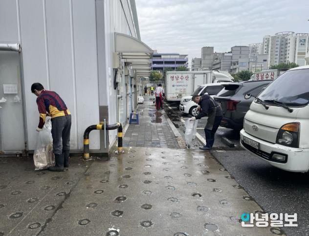도매시장 보도와 차도, 지상·지하 주차장, 녹지공간, 흡연부스 등 이용객이 많이 찾는 구역을 청소했다. 법인·조합별로 책임 구역을 나눠 쓰레기를 수거했다.