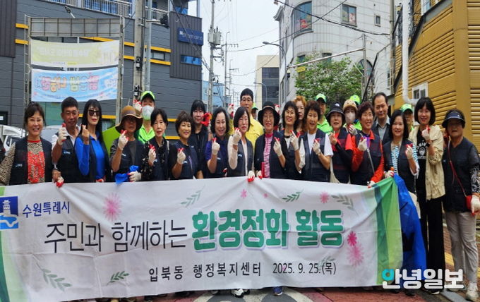 안녕일보 배윤 기자 | 수원시 권선구 입북동 행정복지센터는 지난 25일 추석을 맞아 깨끗한 마을 환경을 조성하기 위해 입북동 일대에서 마을 정화활동을 펼쳤다.