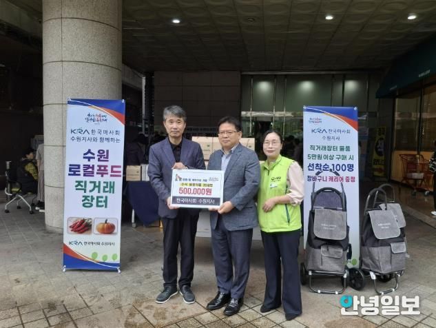 안녕일보 배윤 기자 | 지난 25일 한국마사회 수원지사가 추석 명절을 맞이해 약 50만원 상당의 식료품 세트 20개를 기부했다.