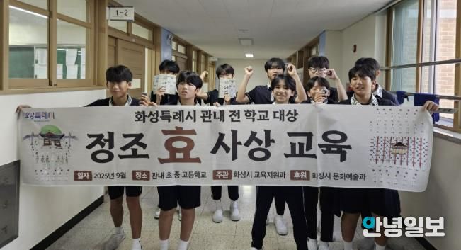 안녕일보 배윤 기자 | 화성특례시는 지난 15일부터 2주간 관내 초중고 191개교 4,858학급을 대상으로 ‘정조대왕 효 사상 교육’을 운영했다고 26일 밝혔다.