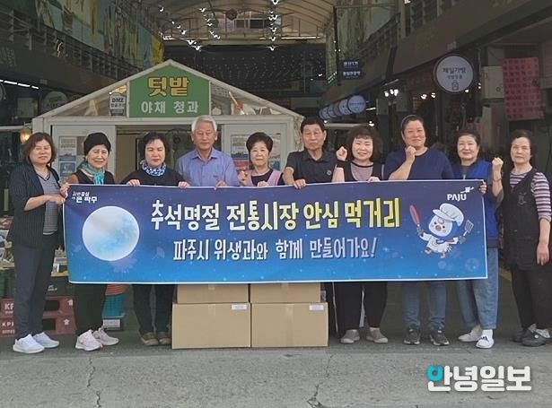 안녕일보 배윤 기자 | 파주시는 지난 29일 관내 전통시장 7개소(금촌전통, 문화로, 명동로, 문산자유, 봉일천, 광탄경매, 적성) 내 식품취급업소 304개소를 대상으로 위생모, 앞치마 630여 개를 지원했다.