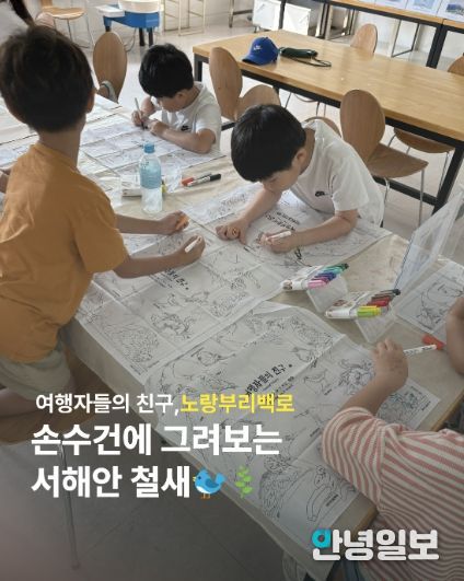 ▲‘여행자들의 친구, 노랑부리백로’는 대부도와 안산 지역의 생태·문화적 가치를 발굴하는 ’사회적협동조합 지지네이쳐’ 가 운영한다. 프로그램은 시화호와 대부도에 찾아오는 다양한 새들을 알아보고, 손수건에 그려진 새들을 관찰하며 직접 색칠하는 체험으로 구성된다. 단순한 그리기를 넘어 습지의 중요성과 생물 다양성의 가치를 이해하고, 완성된 손수건을 활용해 기후변화 대응과 탄소중립 실천의 의미를 되새기도록 기획됐다.