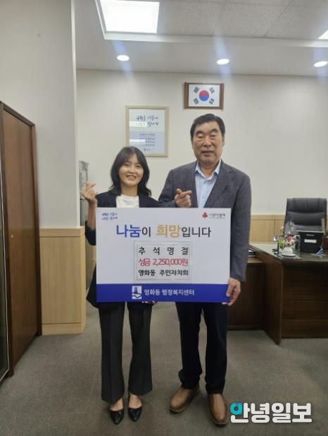 안녕일보 배윤 기자 | 수원시 장안구 영화동 주민자치회는 지난 1일, 추석 명절을 앞두고 관내 도움이 필요한 이웃들을 위해 성금 225만원을 기부했다고 밝혔다.
