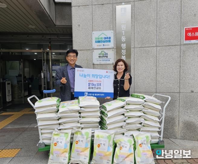 안녕일보 배윤 기자 | 수원시 장안구 조원1동 대한예수교장로회 세계인교회는 지난 1일, 추석 명절을 맞이하여 조원1동 행정복지센터에 백미10kg 50포를 전달했다.