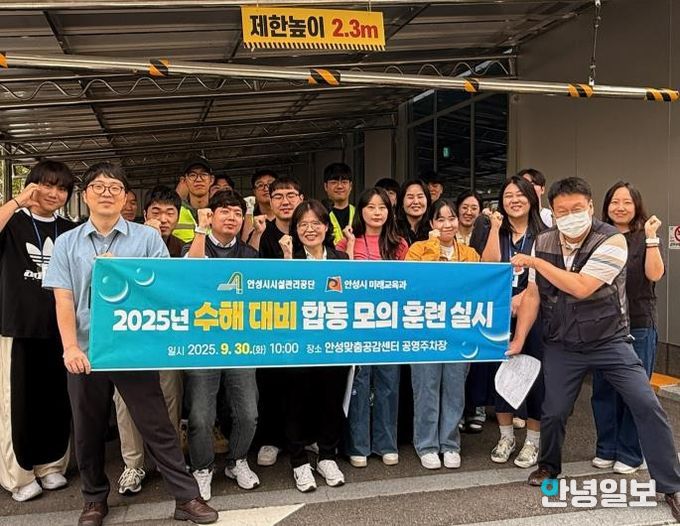 안녕일보 배윤 기자 | 안성시시설관리공단은 지난 30일 오전10시 안성 맞춤공감센터 공영주차장에서, 안성시 미래교육과 청소년팀과 국지성 집중 호우 등 자연재해로부터 시설과 인명을 보호하기 위한 2025년 수해대비 합동 모의 훈련을 실시했다고 밝혔다.