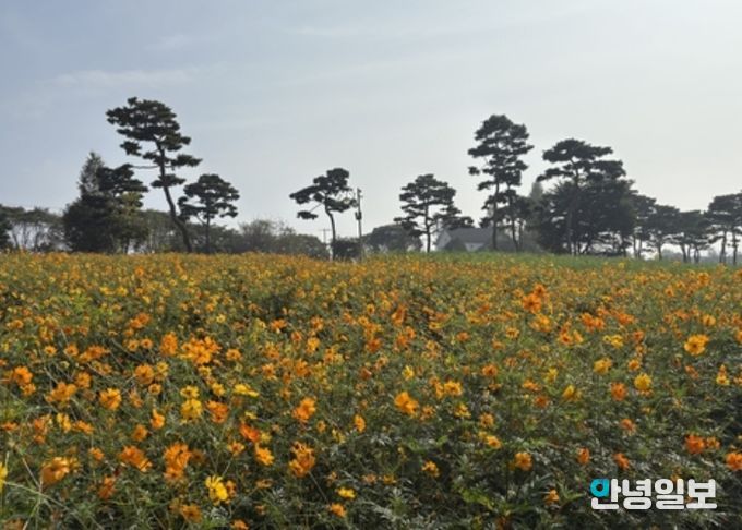 안녕일보 배윤 기자 | 여주시 남한강 출렁다리 남단 일원 연양동에 위치한 금은모래강변공원 초화원에 황화코스모스가 만개하여 손님맞이 준비를 마쳤다.
