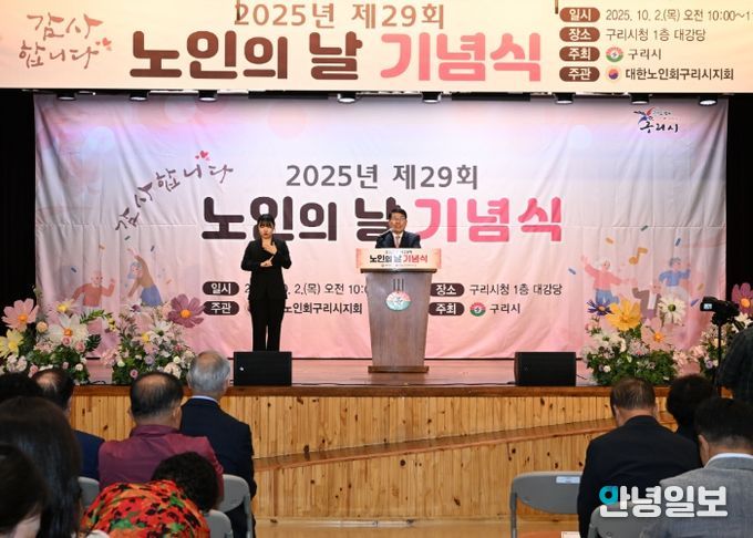 안녕일보 배윤 기자 | 구리시는 노인의 날을 맞아 10월 2일 오전 10시 구리시청 1층 대강당에서 제29회 노인의 날 기념식을 열고 지역 어르신들과 뜻깊은 시간을 가졌다.