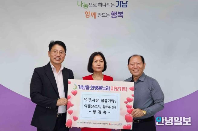 안녕일보 배윤 기자 | 지난 9월 30일 장경숙(가남읍 주민)씨가 가남읍 내 어려운 이웃들을 위해 소고기와 음료수 등 식품을 가남읍 행정복지센터에 기탁했다.