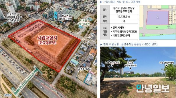 신상진 성남시장은 “오랫동안 미개발 상태로 남아있던 판교동 578번지에 대기업과 복합문화체육시설이 조성되면 일대 유동인구 증가로 교통 인프라 개선 촉진 및 서판교 일대 추가역 신설에 대한 수요 타당성에도 긍정적으로 작용할 것으로 기대한다”며 “올해 하반기부터 지구단위계획 변경 등 행정 절차를 신속히 추진해 2030년 완료를 목표로 속도감 있게 사업을 추진하겠다”고 밝혔다.