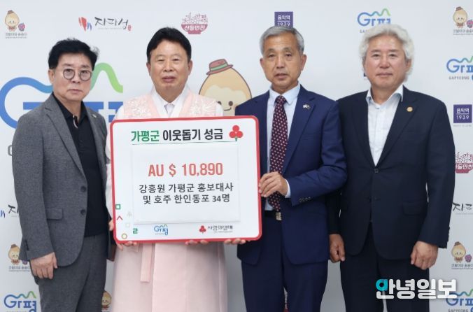 강흥원 홍보대사는 “호주 곳곳에 사는 교민들이 호우 피해 주민들에게 위로와 힘이 되기를 바라는 마음으로 성금을 모았다”며 “이를 계기로 가평군과 호주 교민 사회 간의 우정이 더욱 굳건하게 이어지길 바란다”고 전했다.