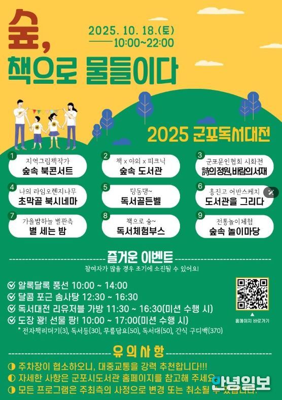 하은호 군포시장은 “올해 독서의 달 행사는 책 읽는 즐거움을 넘어 예술과 체험이 어우러진 복합 문화축제로 시민들과 함께 했다”며 “오는 10월 17~18일 군포올래 행복축제 기간에 초막골 생태공원에서 열리는 군포독서대전에서도 시민들이 책과 가까워지고 다양한 독서문화 프로그램을 즐길 수 있도록 풍성한 행사를 준비하고 있다”며 많은 관심과 참여를 당부했다.
