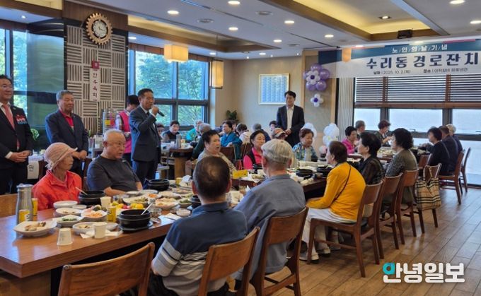 안녕일보 배윤 기자 | 군포시 수리동 주민자치회(회장 고진해)는 제29회 노인의 날을 맞아 지난 10월 2일 수리동 어르신들을 대상으로 경로잔치를 개최했다. 이번 행사는 하은호 군포시장, 이학영 국회부의장 등 여러 내빈과 수리동 직능단체장들이 어르신 100여 명과 뜻깊은 자리를 함께했다.