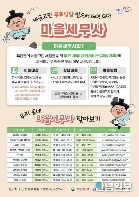 이민근 안산시장은 “세금 문제는 시민 생활과도 밀접하게 연관돼 있다”라며 “어려운 세무 문제로 고민하는 시민들에게 실질적인 도움을 제공할 수 있도록 운영에 최선을 다하겠다”고 말했다.