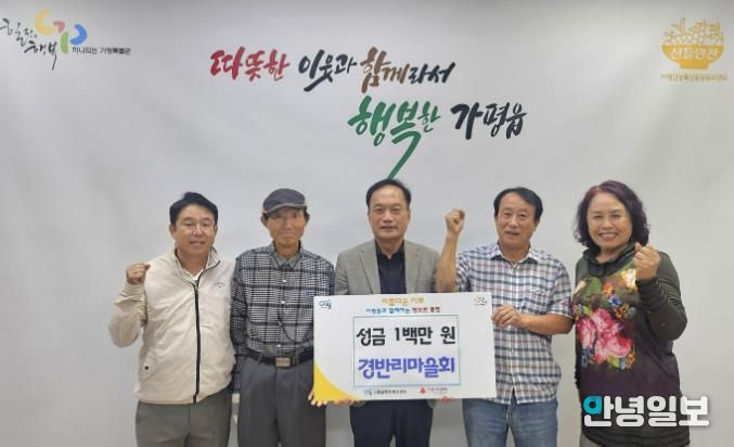 안녕일보 배윤 기자 | 가평군 가평읍은 최근 경반리 마을회에서 취약계층 이웃을 돕기 위해 성금 100만 원을 기탁했다고 밝혔다.
