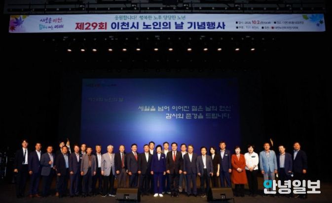안녕일보 배윤 기자 | 이천시는 10월 2일 이천아트홀 대공연장에서 '제29회 노인의 날 기념식'을 열고 어르신들의 노고에 감사와 존경을 전했다.